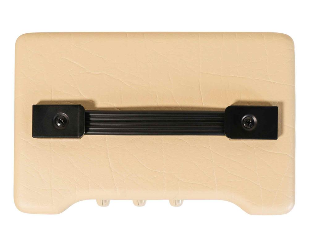 Gorgeous vintage cream and ox-blood styling using premium covering, fret and hardware.