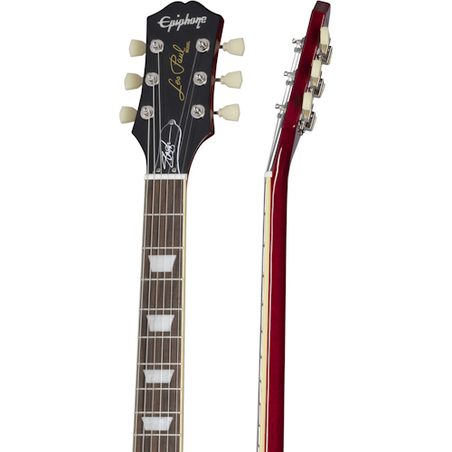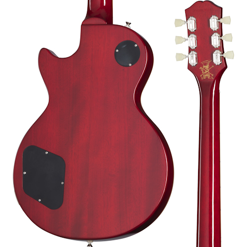 - Headstock inlay: Epiphone logo in mother of pearl, "Les Paul Model" in gold silkscreen, Slash "Skully" logo on back of headstock