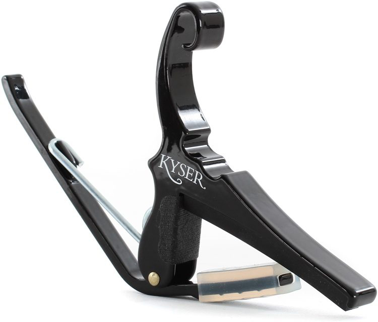 Kapodaster för nylonsträngad gitarr. Kyser Quick Change Capo har varit en favorit i många år hos gitarrister världen över. Tillverkat av mycket lätt och stark aluminium och går inte sönder i första taget. Kapodastret kläms enkelt fast med en hand och har ett jämnt tryck över hela greppbrädan.