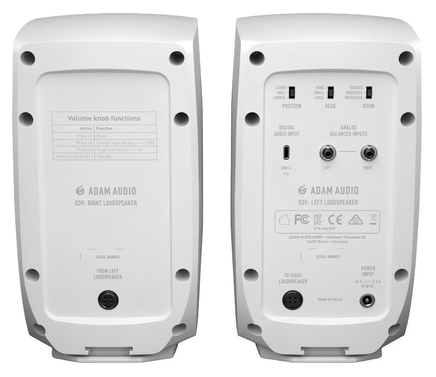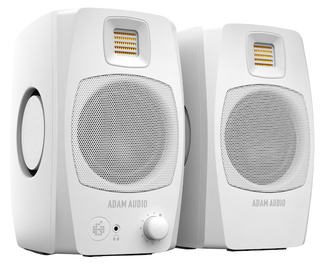 The D3V is a fully active desktop monitoring system designed for songwriters, producers, and music lovers who want to enjoy ADAM Audio sound quality as conveniently as possible. Available in white or black editions, the active monitors feature the iconic golden ribbon tweeter and stay true to ADAM Audio’s German industrial design heritage.