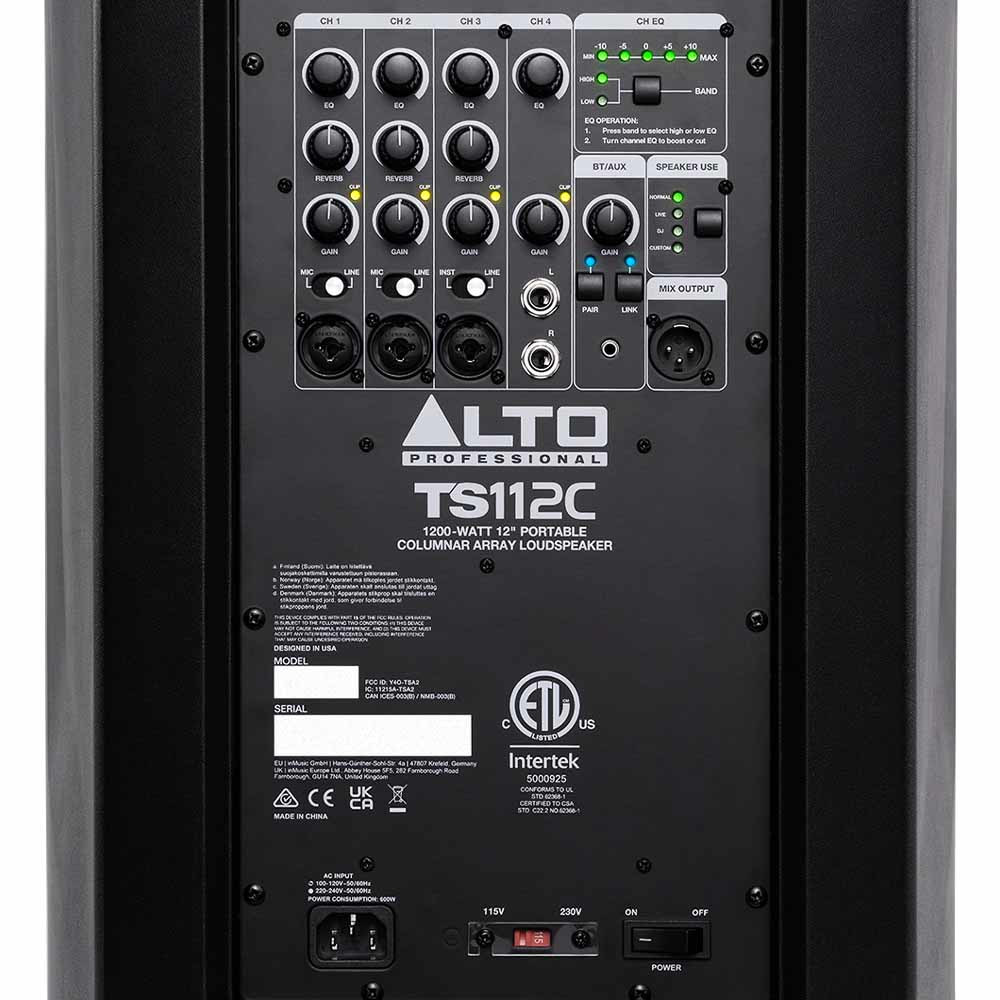 TS112C fungerar som ett komplett PA-system med en inbyggd 5-kanals mixer som har ingångar för mikrofoner, instrument och andra externa ljudkällor. Du kan enkelt justera ljudet och din personliga mix direkt från din mobiltelefon via Alto Pro-appen.