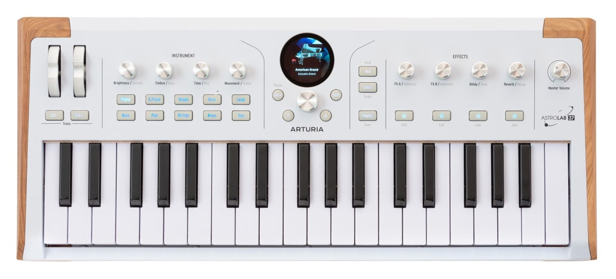 AstroLab 37 ger omedelbar tillgång till ikoniska synthar, klassiska keyboards, akustiska instrument och cineastiska ljudlandskap. Med eftertouch, vocoder-funktionalitet, performance-lägen och hands-on kontroller kan du snabbt omvandla idéer till uttrycksfulla melodier, energiska leads och minnesvärda hooks. Oavsett om du arbetar i studion eller står på scen är AstroLab 37 ett responsivt, robust och helt fristående instrument som följer dina kreativa behov.