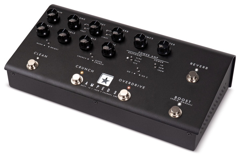 AMPED 3 är en 100 Watts gitarrförstärkare av high gain-typ i pedalform med tre programmerbara kanaler, 6st voicing och inbyggt reverb.