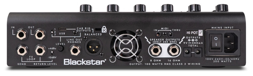 - Inbyggt USB-interface med CabRig-högtalar/mik-simulering för inspelning.