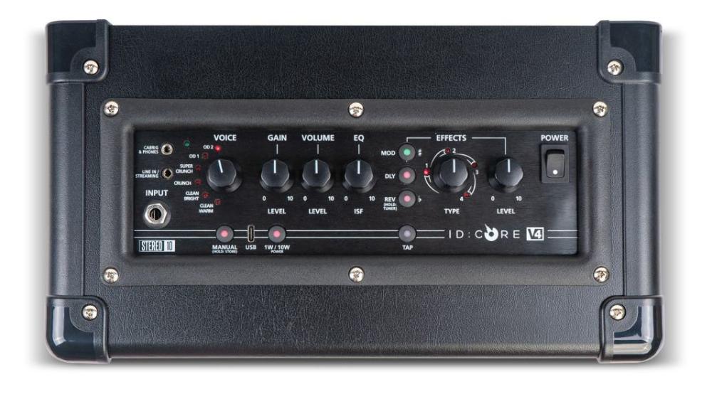 ID:CORE V4 har ett uppslukande stereoljud med en bred ljudbild. Detta gör det till ett utmärkt val för både solospel och den mindre replokalen. Direkt ur kartong så låter en ID:CORE V4 perfekt med en fantastisk ton med dess stora ljudbild. Med gitarristvänliga kontroller kan du sedan börja ställa in dina egna ljud som du sedan enkelt sparar i förstärkaren.