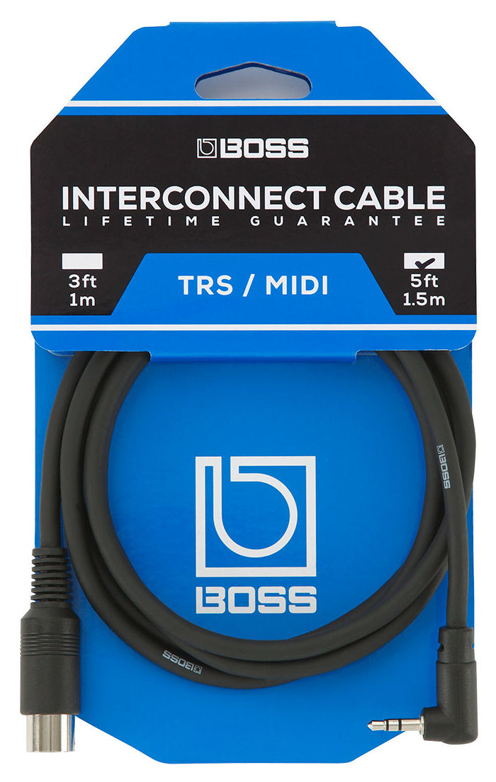 BMIDI-5-35 är en specialkabel med en vinklad 3.5 mm TRS-kontakt i ena ändan och en standard 5-pins MIDI-kontakt (hane) i den andra vilket gör att du kan koppla till externa MIDI-utrustade enheter så som pedaler, effekter, switchers samt MIDI-fotomkopplare. BOSS kablar är tillverkade av tåliga och högkvalitativa material och levererar en prestanda du kan lita på.