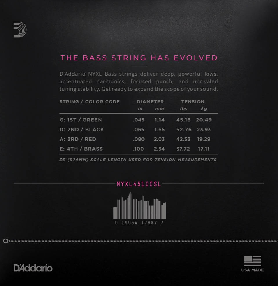 NYXL Bass kombinerar D'Addarios stålkolkärna, NY STEEL, med en omgjord nickelpläterad stålspinning. Denna konstruktion ger en djup och kraftfull baston med ett fokuserat, tajt och punchigt mellanregister och ett komplext övertonsregister. Designad för alla spelstilar har NYXL Bass ett större dynamiskt omfång och en längre sustain än någon annan bassträng.