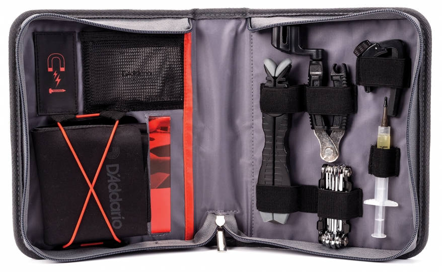 Guitar Maintenance Kit innehåller allt man behöver för att få sitt instrument att spela och låta så bra som möjligt. Allt från strängvev, halsstöd, multi-tool och underhållsprodukter, helt enkelt allt man behöver i en "lätt att alltid ha med sig" väska.