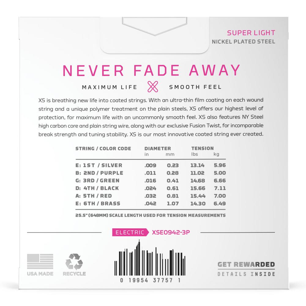 XS andas nytt liv i världen av coatade strängar. Med en ultratunn coating-film på de spunna strängarna och en unik polymerbehandling på de ospunna så erbjuder XS vår högsta nivå av skydd för maximal livslängd i kombination med en sällsynt mjuk och slät spelkänsla. XS har vår unika NY Steel kolstålkärna i kombination med vår exklusiva Fusion Twist förankring av kulan vilket ger en sträng med oöverträffad styrka och stämningsstabilitet. XS är den mest innovativa coatade sträng som någonsin skapats.