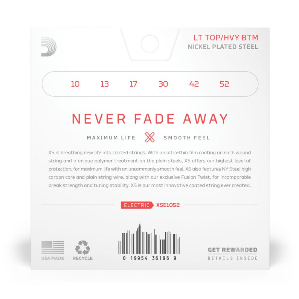 XS andas nytt liv i världen av coatade strängar. Med en ultratunn coating-film på de spunna strängarna och en unik polymerbehandling på de ospunna så erbjuder XS vår högsta nivå av skydd för maximal livslängd i kombination med en sällsynt mjuk och slät spelkänsla. XS har vår unika NY Steel kolstålkärna i kombination med vår exklusiva Fusion Twist förankring av kulan vilket ger en sträng med oöverträffad styrka och stämningsstabilitet. XS är den mest innovativa coatade sträng som någonsin skapats.