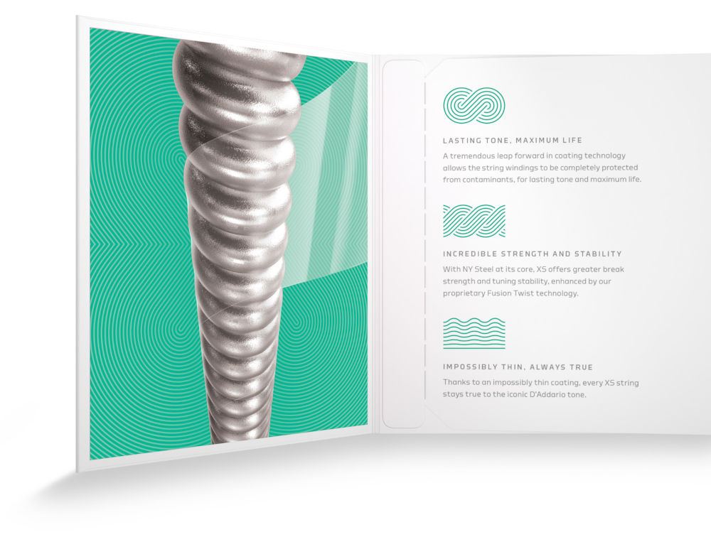 - En ultratunn film är spunnen och smält över varje sträng för att effektivt skydda dem mot smuts, svett och annat som påverkar en strängs ton och livslängd samtidigt som det ger en noterbart slät och komfortabel spelkänsla