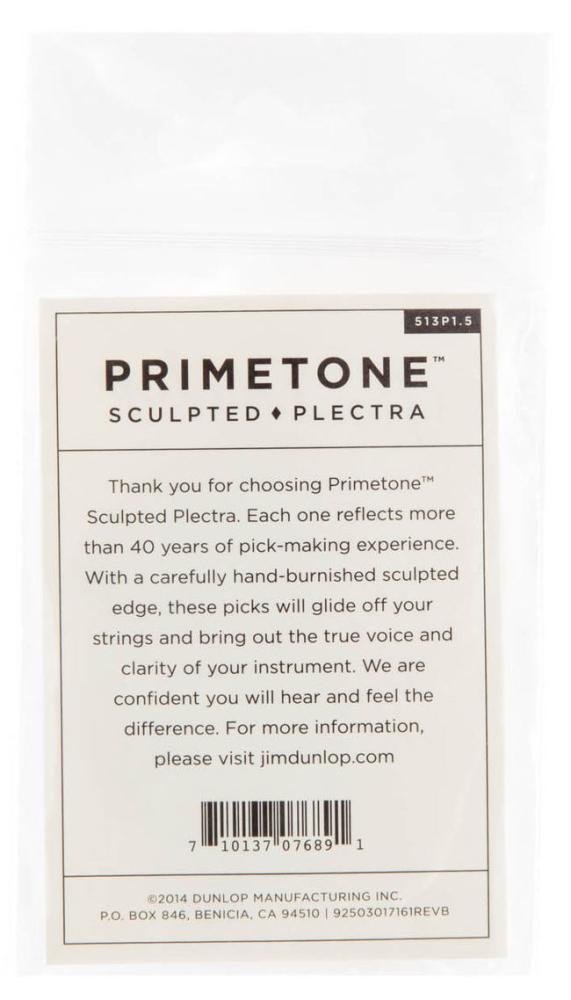 Dunlop's Primetone Sculpted Plectra will glide off your strings and bring out the true voice and clarity of your instrument. They're made from Ultex for maximum durability and tonal definition, with hand-burnished sculpted edges for fast, articulate runs and effortless strumming. Available in a variety of shapes and gauges with a low-profile grip or a smooth traditional surface.