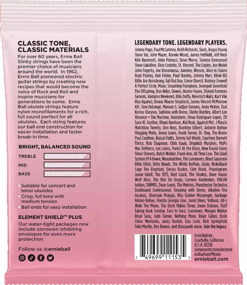 Ernie Ball anses idag som en av dom största revolutionärerna när det gäller gitarrtillbehör och strängar. Sherwood Roland Ball som han egentligen hette började som radio och tv-musiker i USA insåg tidigt att det fanns ett stort tomrum att fylla vad det gällde produkter för gitarr och bas. Familjeföretaget som nu gått vidare till den tredje generationen i Ball-familjen har fortsatt att skapa förutsättningar och lösa problem för musiker världen runt. Paradigm- och Cobolt-strängarna är bara några exempel på hur varumärket Ernie Ball brutit ny mark och försett gitarrister och basister med strängar som ger mer volym och längre hållbarhet. Ernie Ball's tradition att ta fram nya produkter med grunden i företagets historia kombinerat med ny revolutionerande teknik lever med andra ord vidare.