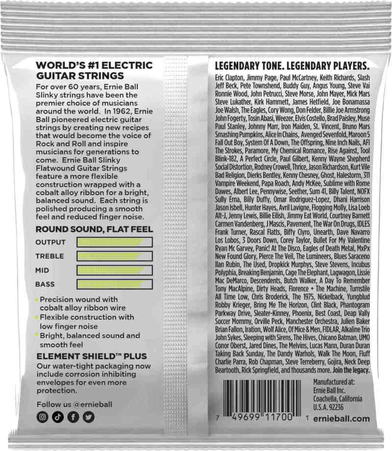 Ernie Ball Flatwound för elgitarr är helt enkelt en serie strängar som känns som "slipade" strängar men låter som traditionella Slinkys. Dessutom har dessa set en ospunnen G-sträng vilket gör bändningar och solospel lättare.