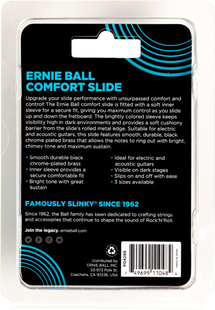 Ernie Balls Comfort-sliderör har en mjuk invändig beklädnad för att sliden skall sitta säkrare på fingret utan att det för den sakens skull känns ”tight”. Dessa sliderör i svart kromplätterad mässing passar lika bra till elgitarrer som till akustiska gitarrer och låter tonerna sjunga med en klar och sustainrik ton.