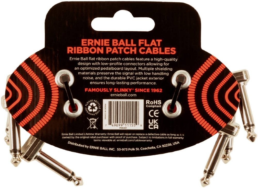 Ernie Ball 6401 Flat Patch Cable Vinklad-Vinklad 7,5cm - Röd 3-pack