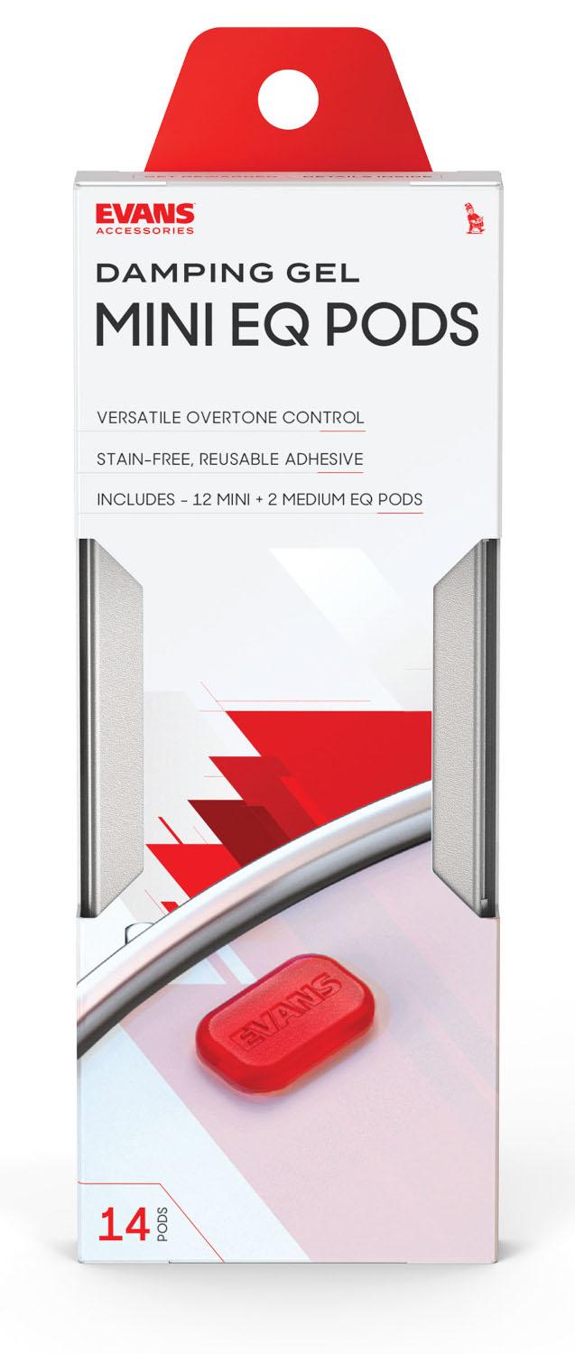Modifiera ditt sound med Evans EQ Pods och kontrollera övertoner, resonans och trumskinnets efterklang. EQ Pods polymer gel är ovanligt formstyva och har en teflonbeläggning på ovansidan som är dammavstötande. Undersidan har väldigt god vidhäftning och fungerar även på klara underskinn. EQ Pods appliceras enkelt av/på skinnet, ko-klockan... och lämnar inga märken. Efter en tids användning sköljer man EQ Podsen i vatten och återställer den goda vidhäftningsförmågan. EQPODSMINI levereras i ett etui innehållande tolv minipods och två medium EQPod.