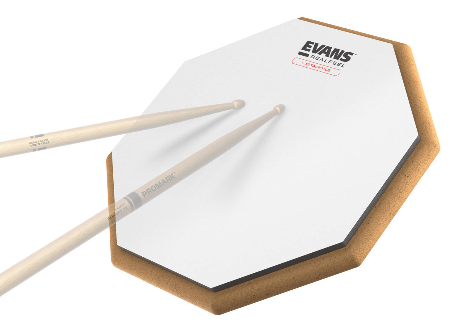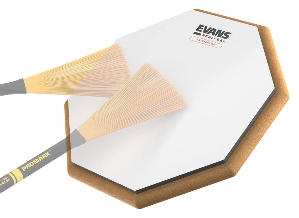 Övningsplatta med spelyta av gummi och film belagd Evans hållbara UV-Coating. Coatingen gör att du får en distinkt attack och god dynamik.