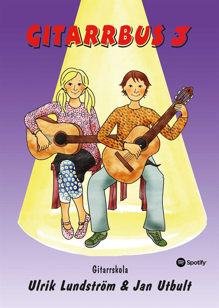 Den tillhörande musiken går att lyssna på i albumet Gitarrbus 3 som du hittar på Spotify för smidig tillgång både hemma och på lektionstid. Gitarrbus 3 uppmuntrar dessutom till spel tillsammans med andra: vissa låtar har spelstämmor och andra låtar kan delas upp i melodi, ackord med plockkomp och ackord med slagkomp.