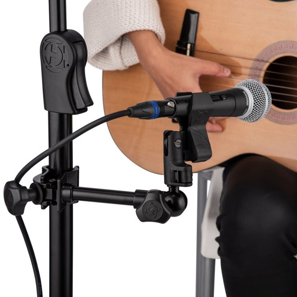DG137B kan fästas i ett cymbal eller hi-hatstativ för smidig mickning av dessa eller i hi-hatstativet för mickning av virveltrumman. Den passar även att fästa i ett mikrofonstativ för att micka upp akustisk gitarr samtidigt som du använder stativet till sångmikrofonen. Klampen är utformad så att den fäster lika bra på ett kantigt som ett runt rör eller en bordsskiva.