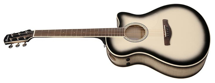 - Solid Sitka Spruce top, Flamed Maple back & sides