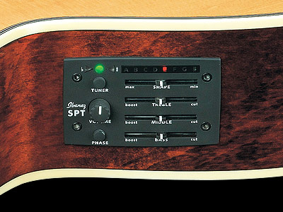 AEB8E-BK (Black). AEB har samma kroppskontur som AEG-serien och med sitt feta tunga sound passar AEB till alla basister. Med en förförstärkare med inbyggd stämapparat av SST eller SPT typ och den tjocka kroppen är AEB den perfekta basen för Unplugged gig. Spec: • AEB body. • X Bracing. • Spruce top. • Mahogany back & sides. • Mahogany neck. • Rosewood Fretboard. • Rosewood bridge. • Ivory body binding. • Chrome Die-cast Tuners. • 22 Frets. • Plastic Bridge pin. • D'Addario® EXP (.045-.100 Gauge) strings. • Ibanez Under Saddle Pickup. • Ibanez SPT Shape Shifter™ preamp w/Onboard tuner. • Balanced XLR & 1/4 outputs. • AA Battery x 2. • Finish: Gloss Black. Halsen: • Scale: 32 /815mm. • Width at Nut: 43mm. • Width at 14th Fret: 58mm. • Thickness at 1st: 21mm. • Thickness at 7th: 23.5mm. • Radius: 400mmR. Kroppen • Längd: 508mm, 20 . • Bredd: 406mm, 16 . • Max djup: 127mm, 5 .