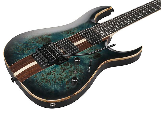Toppen är en välvd top av Poplar Burl/Maple/Walnut/Curly Maple/Panga Panga (17mm top) som utseendemässigt skiljer sig mellan olika bitar, inga gitarrer ser exakt likadana ut.