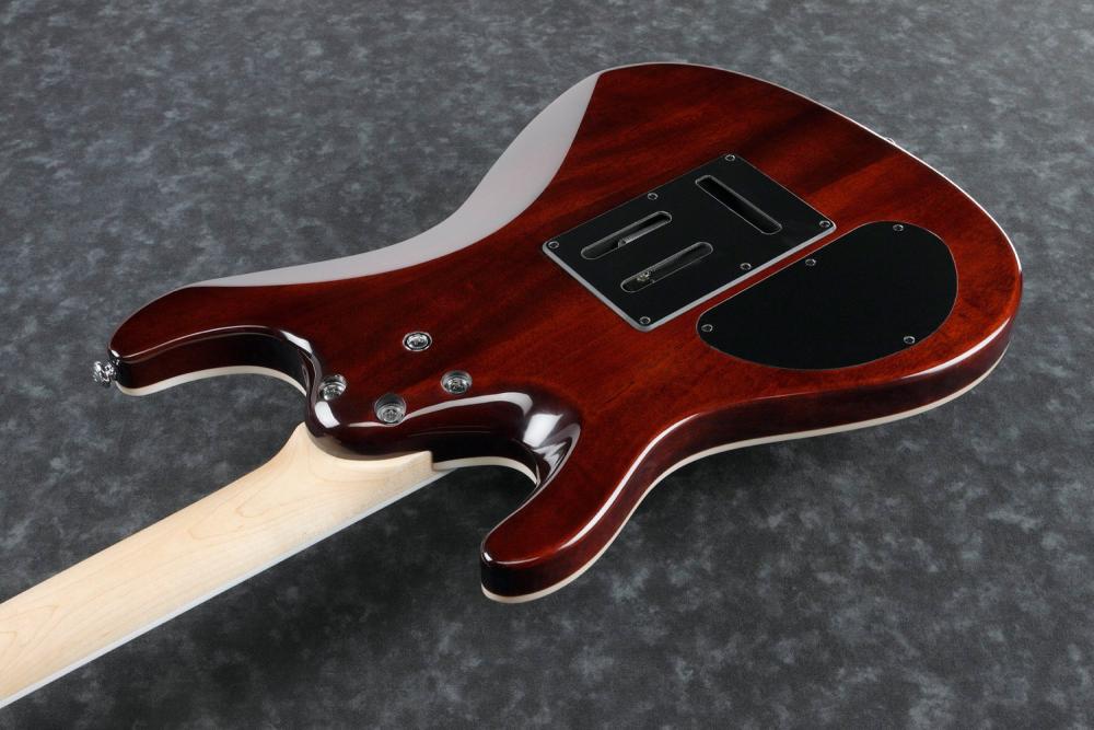 SA är en rundare och mer C formad halsprofil än vad Ibanez oftast har, en hals som känns mer åt stratahållet, mer traditionell. En 22-bands greppbräda med medium bandstavar fortsätter att förmedla samma känsla som halsprofilen. En väldigt skön hals som är lätt att spela länge på.