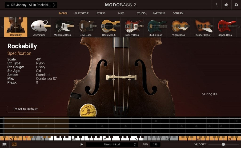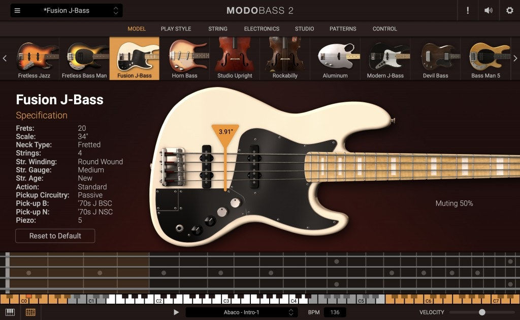 MODO BASS 2 is the expanded edition of IK’s industry-first physically modeled bass virtual instrument, adding 8 new basses, including new fretless and upright options, a new patterns section with tons of new grooves, advanced performance controls and more ways to enter the MODO BASS world. MODO BASS 2.0 includes the 14 original iconic basses plus 8 exciting new ones to cover any style of music. You’ll find 6 new eclectic models, including 2 legendary fretless basses plus 2 double-bass instruments. And with the power of MODO you can turn any standard bass into a fretless* model for even more sonic options.