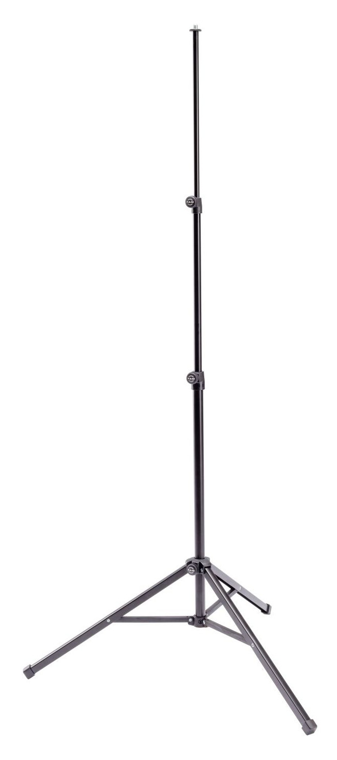 K&M 19786 är ett lätt och stabilt universalstativ, perfekt för montering av surfplatthållare eller annan utrustning med 3/8"-gänga, såsom mikrofoner och kulledsfästen. Stativet är dubbelutdragbart och erbjuder en generös höjdjustering från 630 till 1 450 mm, vilket gör det användbart både stående och sittande. Den lätta konstruktionen väger endast 900 gram och kan fällas ihop till kompakt storlek, vilket gör det perfekt för mobila musiker, tekniker och content creators.