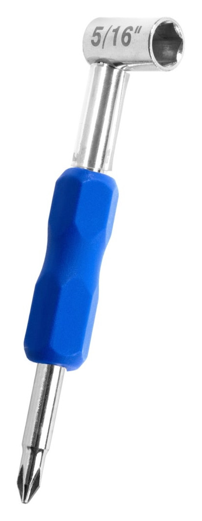 Verktyg med truss rod-nyckel i ena ändan och en magnetisk stjärnmejsel i andra.