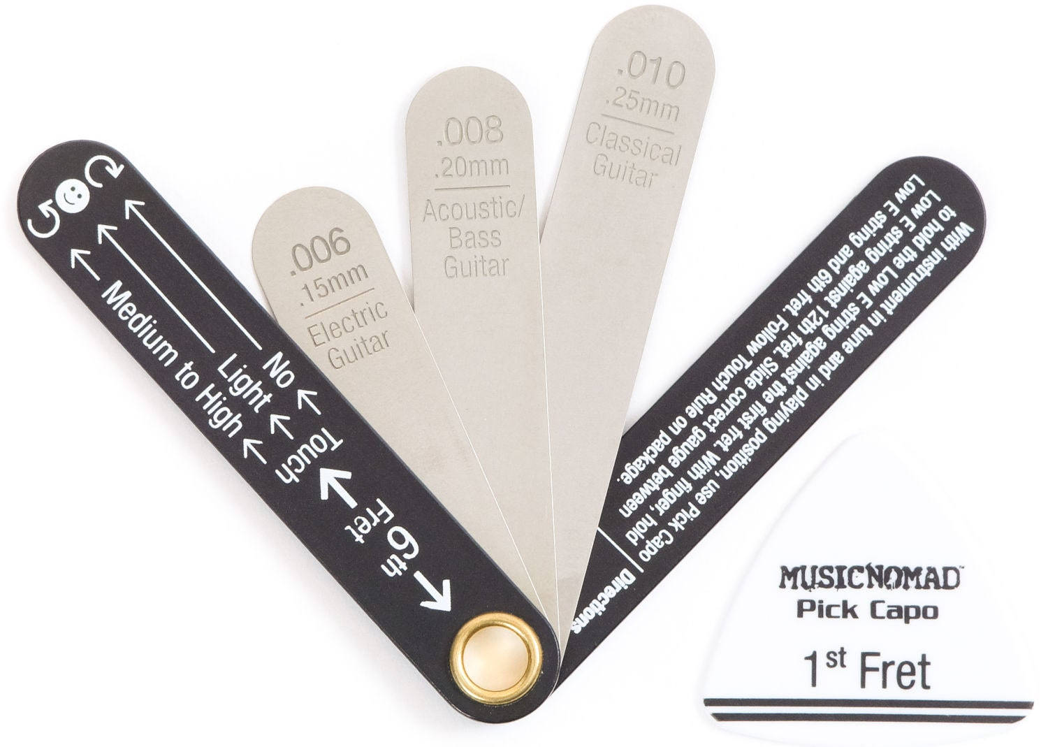 För att enkelt justera halsen på din TAYLOR eller andra instrument med 1/4" dragstångshuvud så har MusicNomad tagit fram ett set med dragstångsnyckel och måttsats. Måttsatsen kommer med de vanligaste relief-måtten för elektriska, akustiska gitarr samt även för elbasar, för just Taylor rekommenderas generellt måttet .008". Dragstångsnyckeln är konstruerad att passa de TAYLOR instrument där halsen justeras vid huvudet, i andra änden av dragstångsnyckeln hittar man en praktisk magnetisk stjärnskruvmejsel. Perfekt när man tar bort dragstångsluckan.