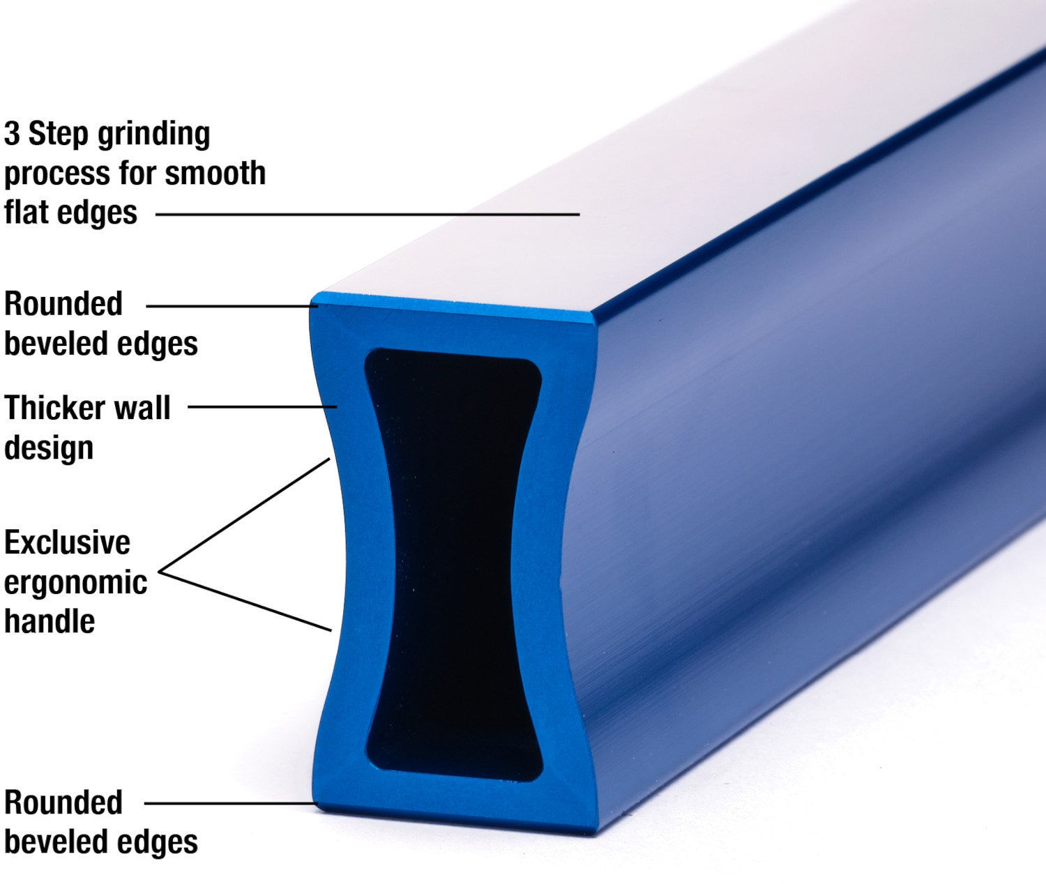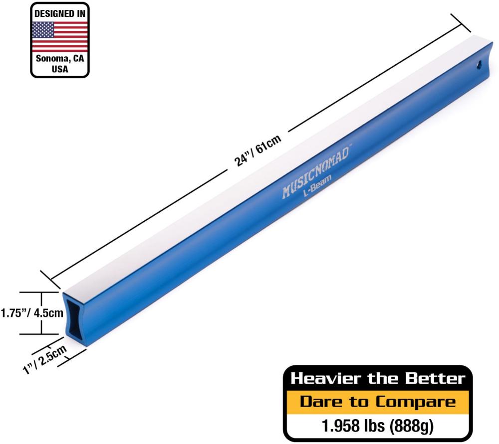 Att slipa band har aldrig varit enklare än nu, med Music Nomads skena för bandslipning så blir jobbet mycket lättare. MN812 har en längd av 24" (61cm) anpassad för elbas. Skenan är formad så den är lätta att greppa så att man är stadig på handen när man jobbar med banden. Godset i skenan är kraftigt men har en i hålighet vilket gör den lätt men ändå stabil samtidigt som ytterkanterna är avfasade för att undvika att man slår i eller på annat sätt skadar banden. Kanske viktigast är att sidorna man slipar med är utformade på ett sådant sätt så slipningen blir väldigt precis, en noggranhet på +/-0,39 mm per 30 cm. Precis som vanliga verktyg har MN812 ett hål så den är enkelt att hänga upp på verktygstavlan, dessutom ingår 3 stycken sjävhäftande slippapper (2 x P240, 1 x P400).