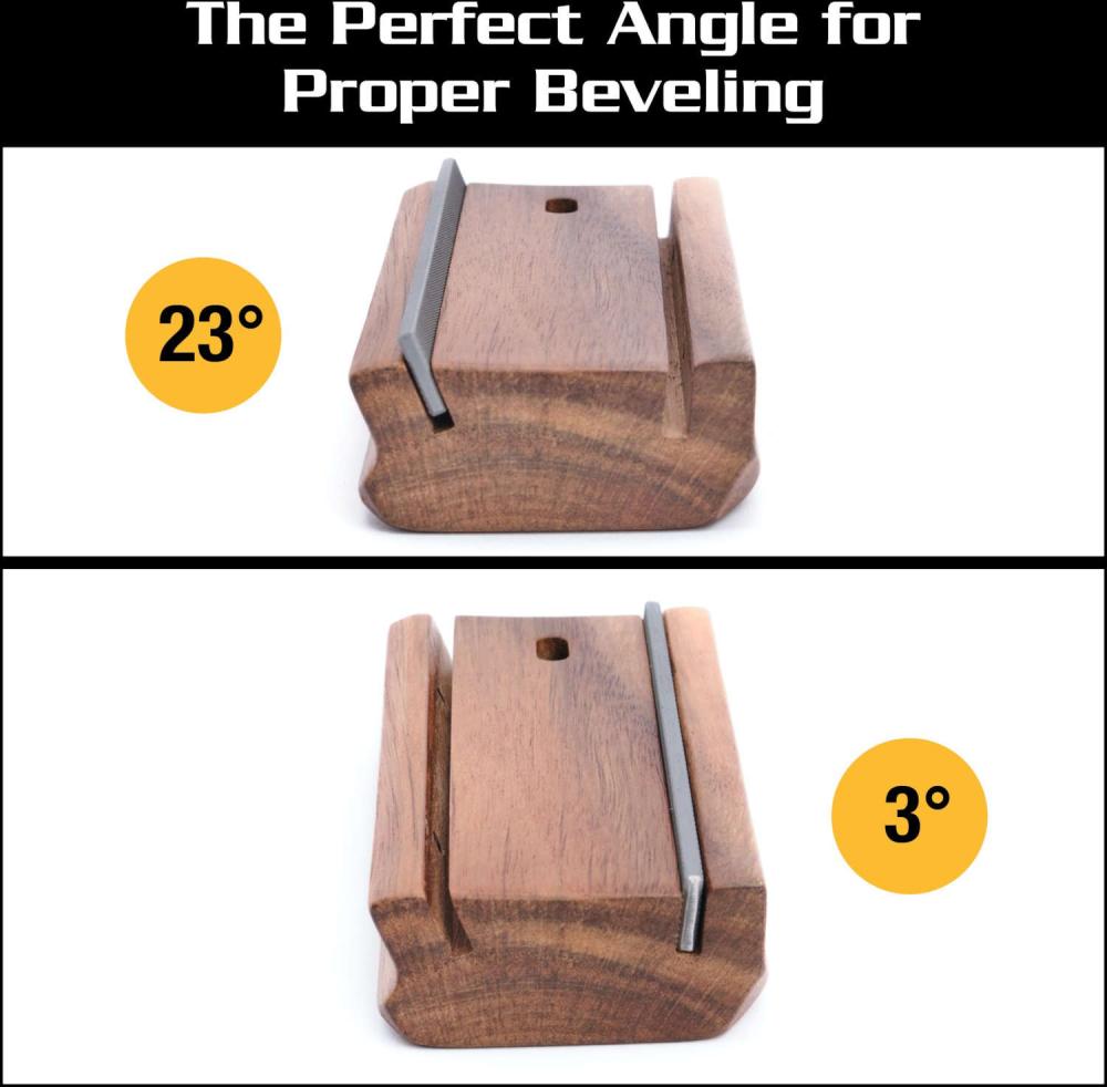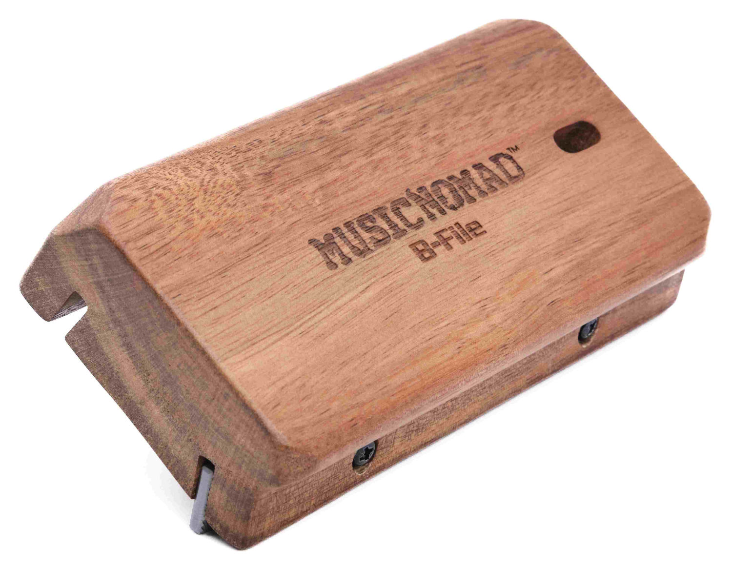 Fila dina bandändar på ett enkelt och säkert sätt med MusicNomads MN831. Lösningen på detta i konstruktionen är radien och vinklarna på fästet som är tillverkad i Acacia-trä. Utifrån behov väljer du själv vilken vinkel du använder, 3 eller 23 grader och radien gör att du alltid är centrerad över hela greppbrädan och håller dig stabil på handen när du filar bandändarna.