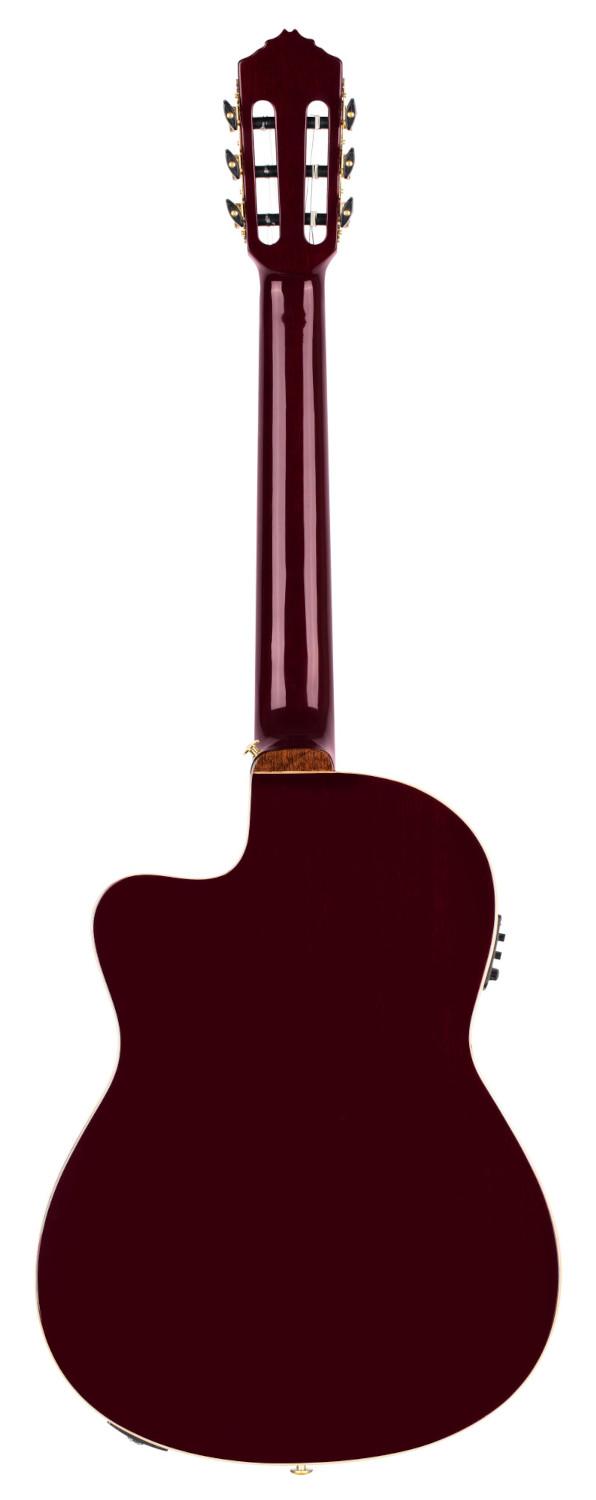 - Solid Alaska Sitka spruce top, gloss Stanied red finish