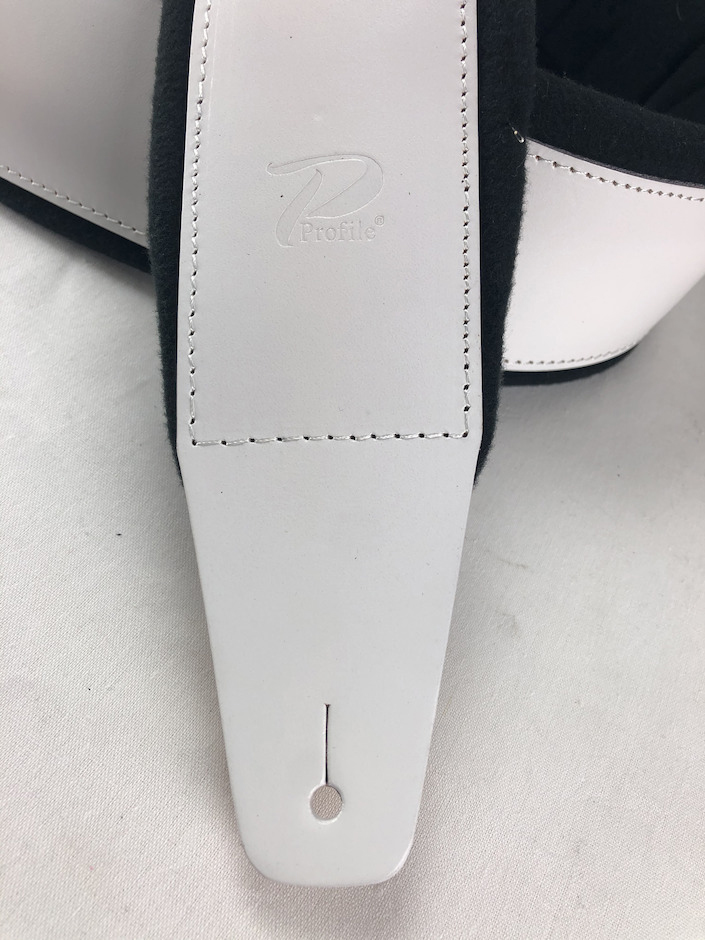 3" wide Pro Guitar Strap with first quality Italian leather top, and foam padded backing. White