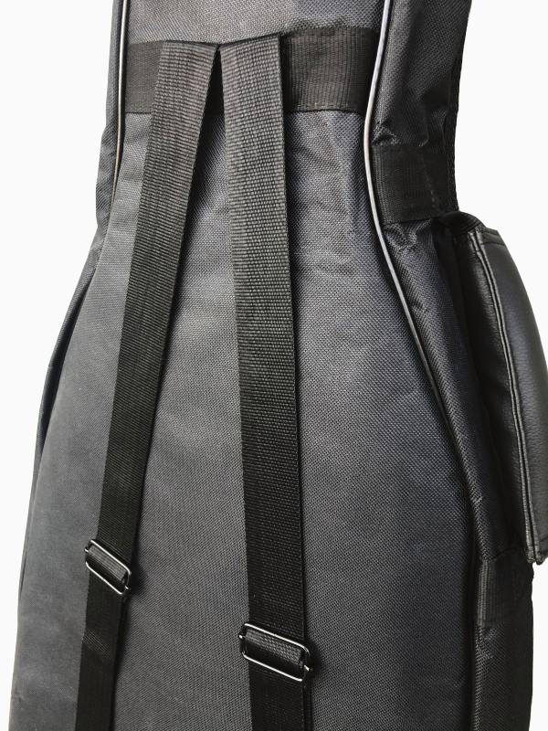 PR50-DB har 5mm stoppning för att skydda din gitarr, justerbara ryggsäcksremmar så du kan bära ditt instrument på ryggen samt ett vadderat & behagligt handtag om du hellre vill bära den i handen. På utsidan finns en rejäl ficka för tillbehör & i botten sitter en gummiremsa så du kan ställa ner den utan att bagen suger upp eventuell väta från backen.