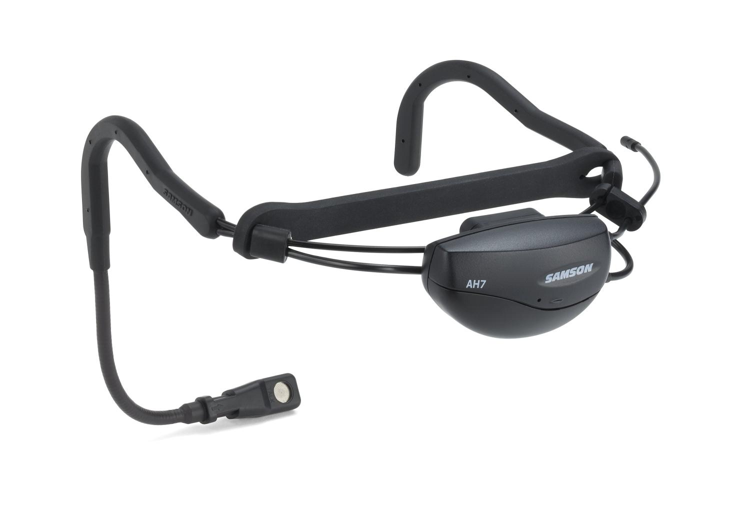 The Samson AirLine 77 AH7 Fitness Headset system is a wireless microphone solution designed to meet the specific demands of fitness instructors and active performers. With the unique AH7 micro transmitter mounted to a sweat-resistant Qe fitness headset microphone, you can free yourself completely from cables and beltpacks for a truly exhilarating and motivating experience.