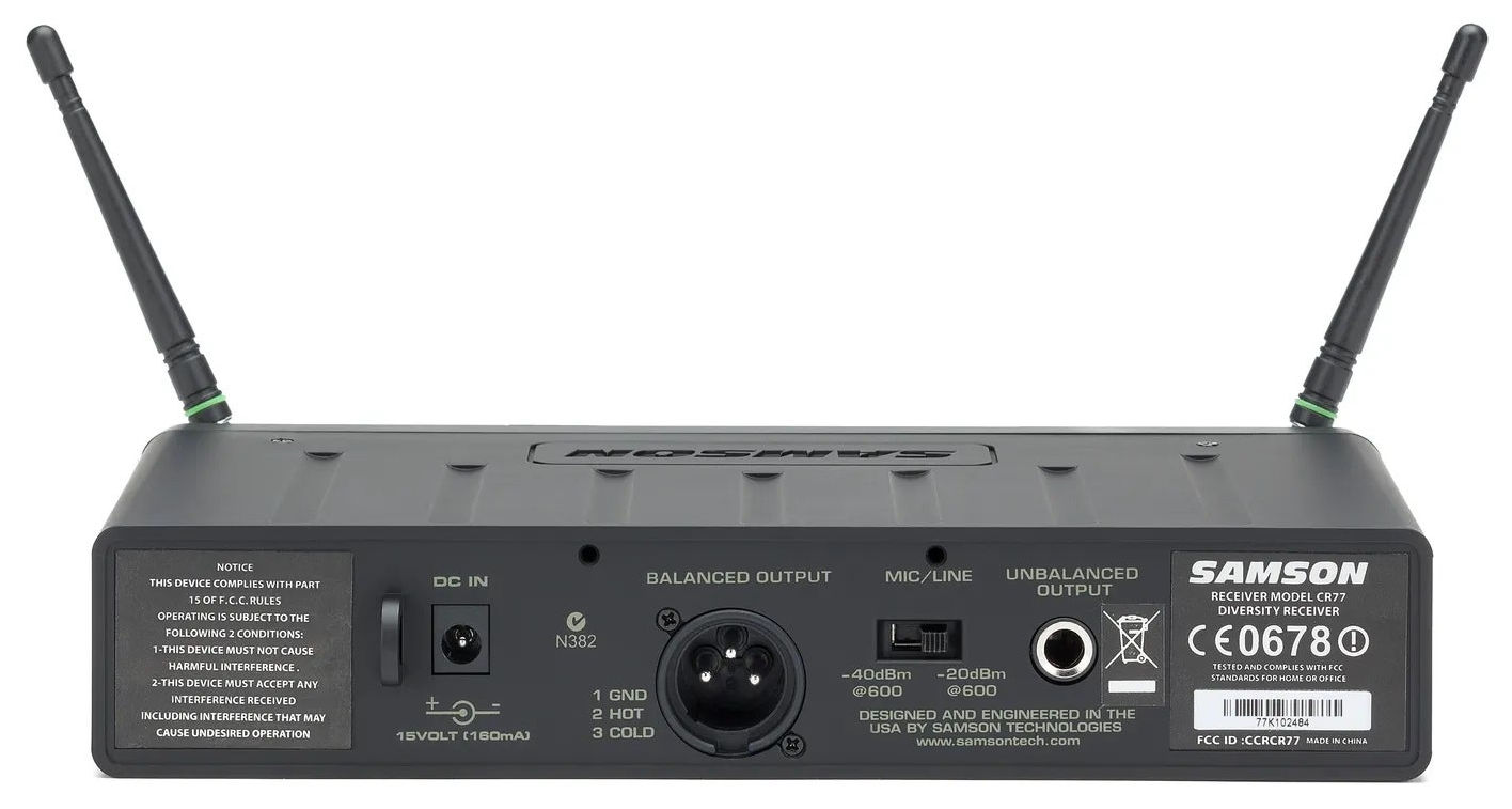 The CR77 True Diversity receiver provides reliable performance with up to 300' (90m) of wireless operation. Its half-rack housing is light enough to throw in your bag. The rear panel features balanced XLR and unbalanced 1/4" outputs allowing flexible connection options.