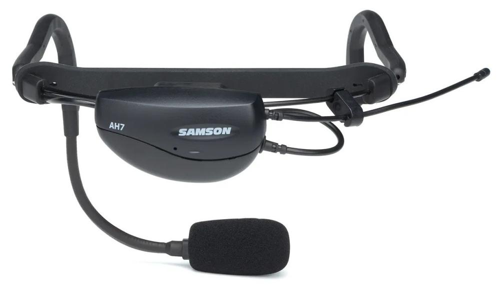 The Samson AirLine 77 AH7 Fitness Headset system is a wireless microphone solution designed to meet the specific demands of fitness instructors and active performers. With the unique AH7 micro transmitter mounted to a sweat-resistant Qe fitness headset microphone, you can free yourself completely from cables and beltpacks for a truly exhilarating and motivating experience. Fitness headset with mounted micro transmitter (no beltpack or cable required) Qe condenser microphone element with bidirectional pickup pattern Sweat-resistant mic design for high-energy instructors/performers Up to eight hours of battery life using single AAA battery Power/Low battery LED indicator Internal Power switch