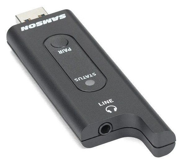 - USB stick receiver with 1/8" (3.5mm) headphone/monitor output