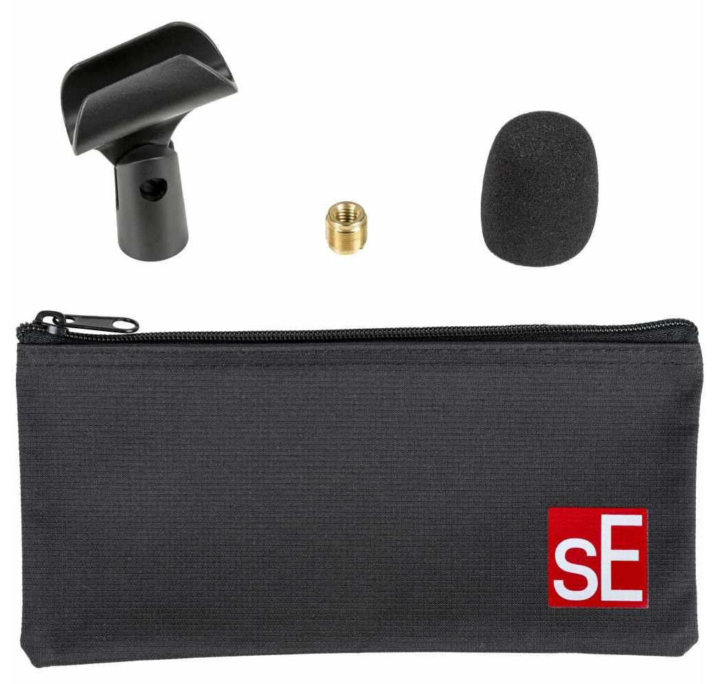 Levereras med väska, mikrofonklyka, gängadapter och ett svart och ett rött puffskydd