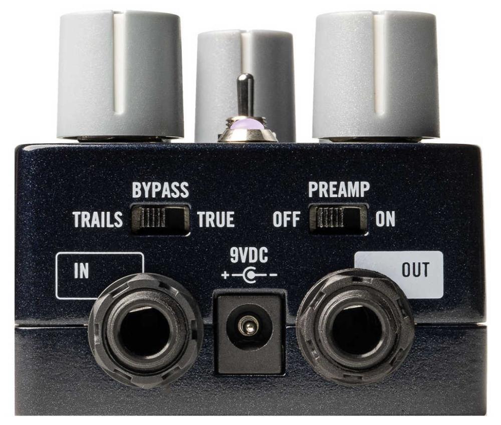 Guitar effects pedal with three vintage tape delay emulations, perfectly emulated analog preamp circuit and wow/flutter, true/buffered bypass, Preamp on/off, and analog dry through.