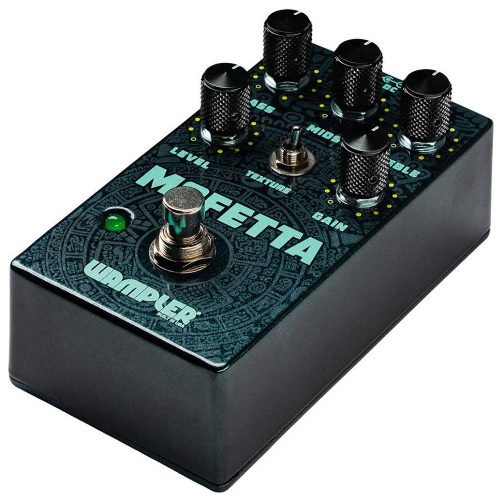 The Mofetta is a supercharged MOSTORTION, reborn and amplified that delivers the classic, amp-like overdrive, massive headroom, and versatile 3-band EQ that made the original so famous. Wampler wanted "more" and added a Texture Switch that introduces actual MOSFETs into the pedal's overdrive section for a bolder, more articulate tone. The Mofetta preserves everything you love about the early '90s legend with a powerful new Wampler dimension.