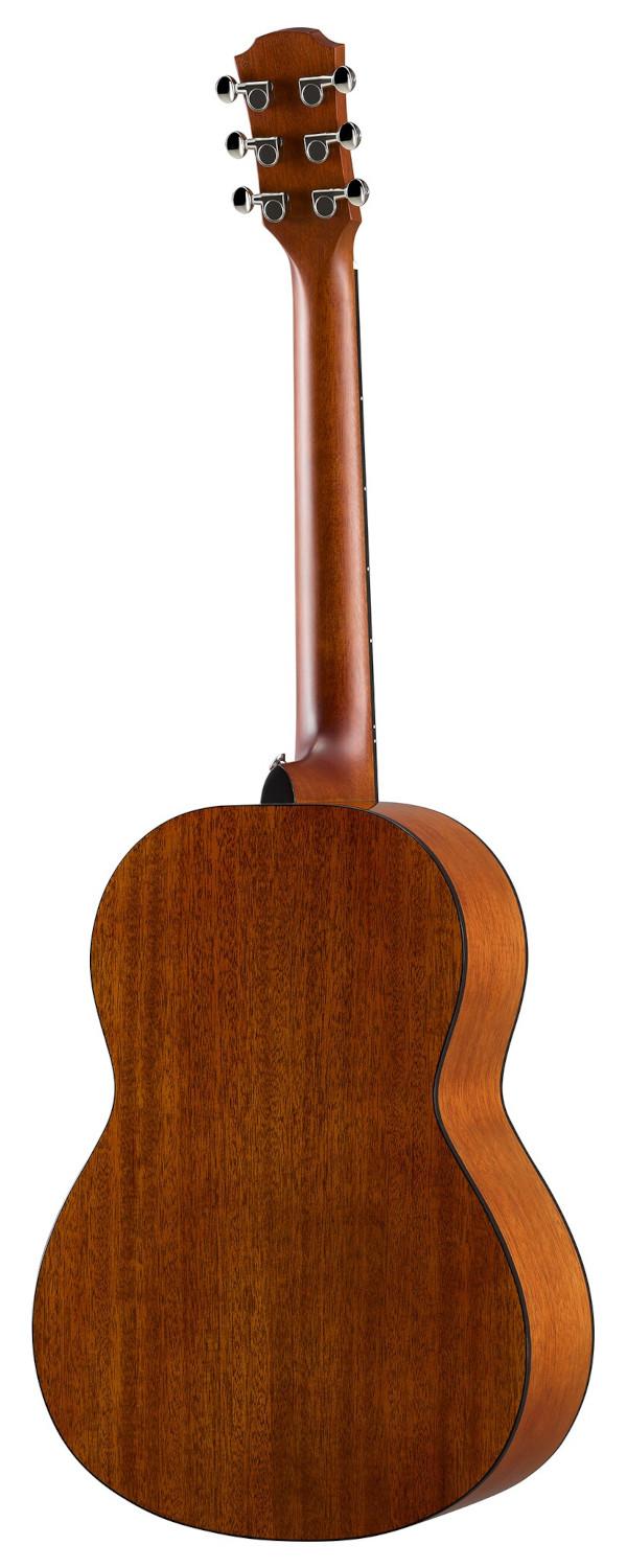 Kompakt folkgitarr med solitt granlock samt bakstycke och sarg i mahogny. Nydesignad "scalloped bracing".
