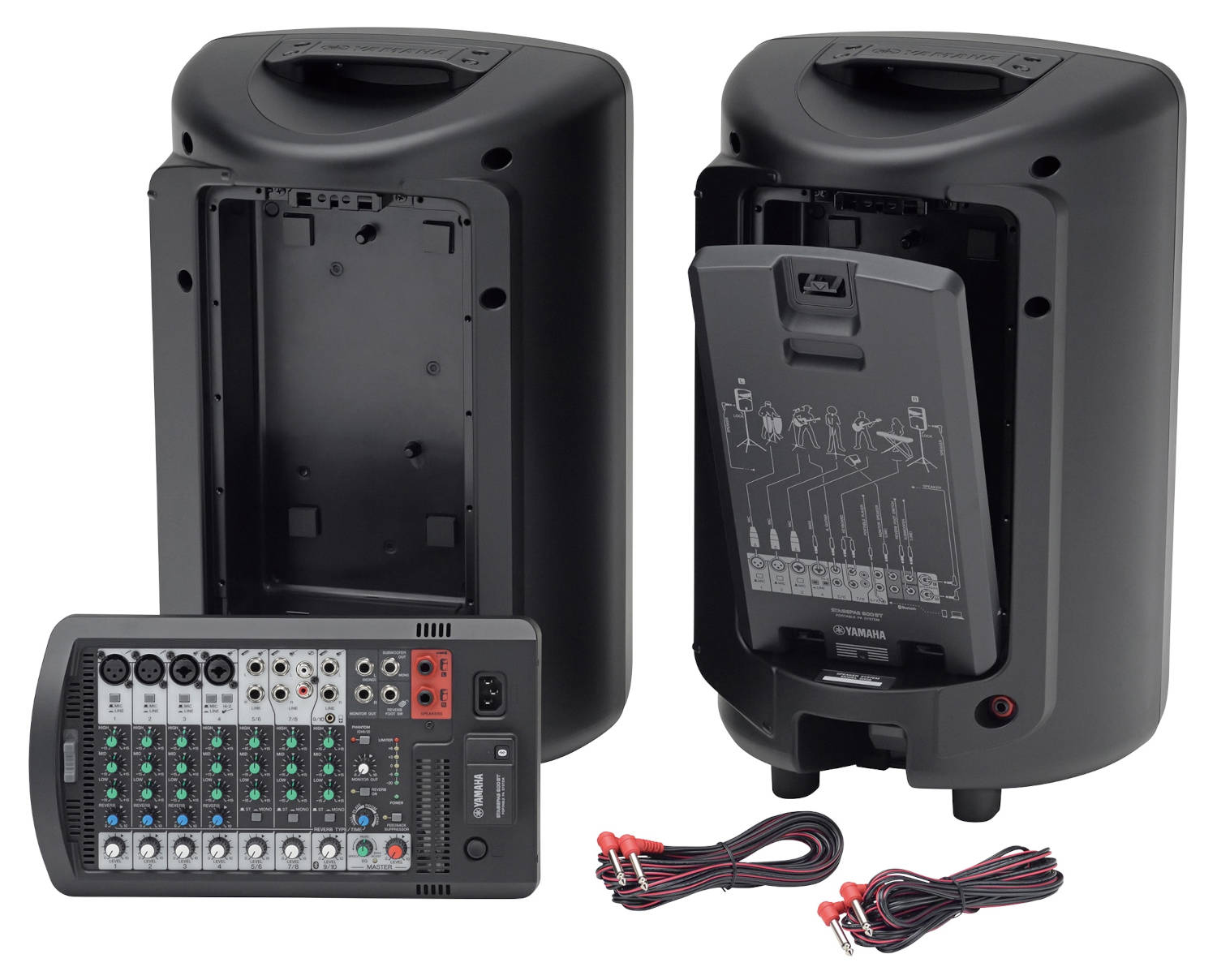 680-watts portabelt PA-system med 10-kanalig mixer, två 10-tumshögtalare, USB-anslutning för iPod/iPhone, digitala SPX-reverb, inbyggd rundgångsdämpare och enkel EQ.